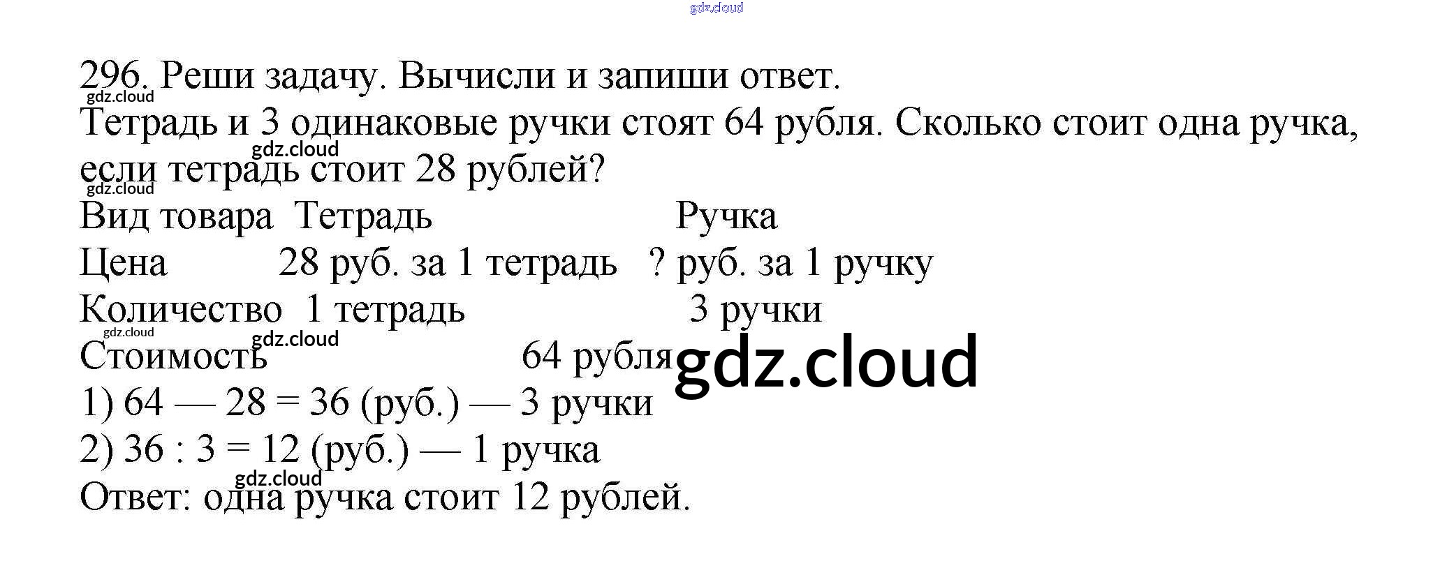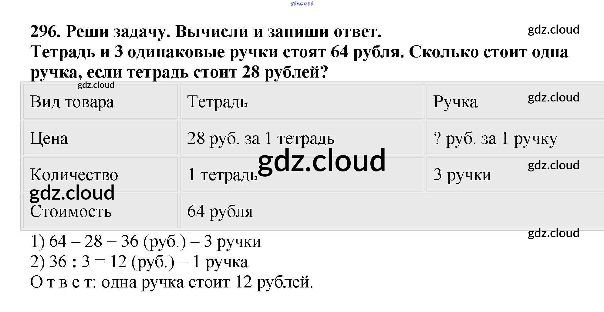 Ответ на задание 296 Учебник Математика за 3 (третий) класс Чекин Перспективная начальная школа 2016 Часть 1, 2