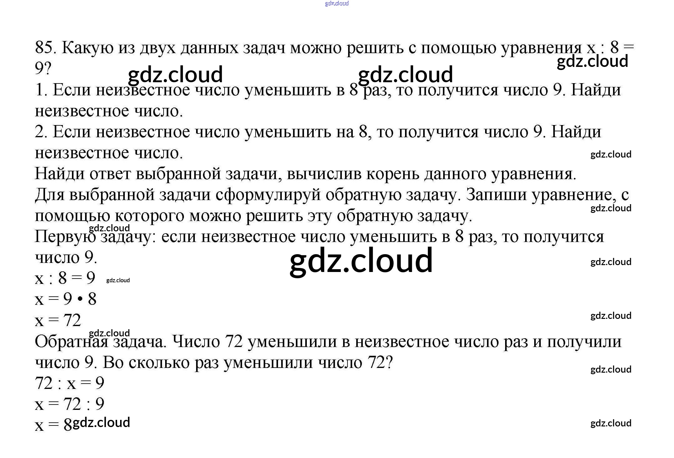 Ответ на задание 85 Учебник Математика за 3 (третий) класс Чекин Перспективная начальная школа 2016 Часть 1, 2