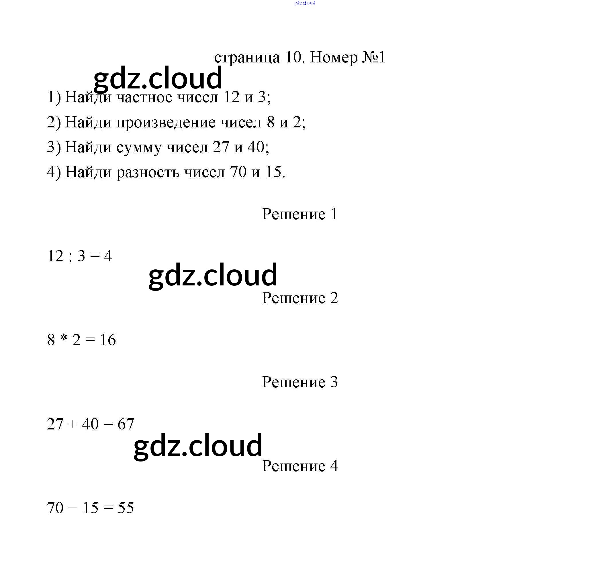 Страница 10 Ответы к части 1 по Математике 3 класс Учебник Дорофеев Часть 1, 2 Просвещение