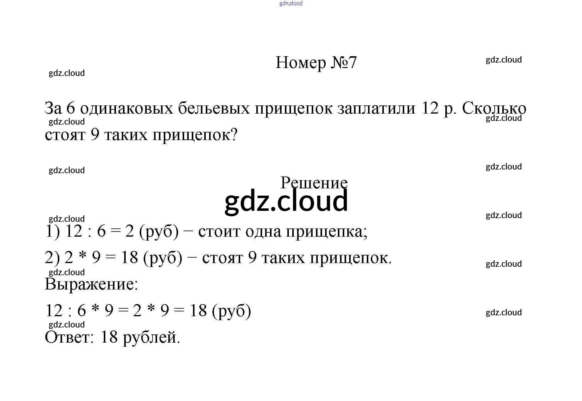 Ответ на задание 7 Учебник Математика за 3 (третий) класс Дорофеев, Миракова 2015 Часть 1, 2