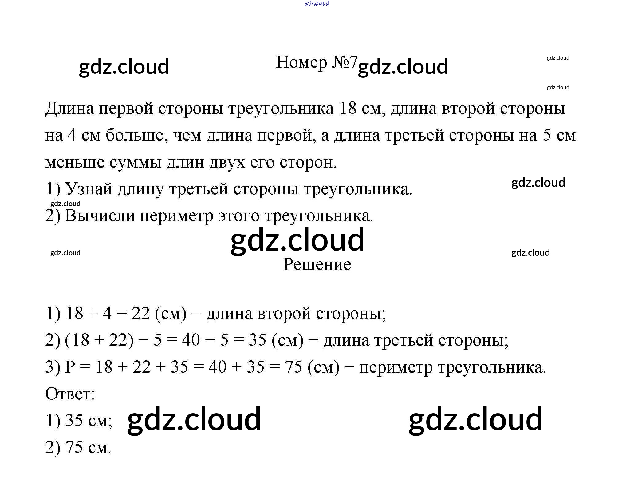 Ответ на задание 7 Учебник Математика за 3 (третий) класс Дорофеев, Миракова 2015 Часть 1, 2