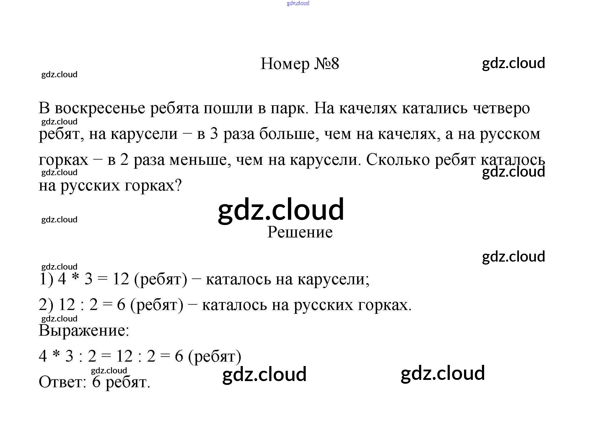 Ответ на задание 8 Учебник Математика за 3 (третий) класс Дорофеев, Миракова 2015 Часть 1, 2