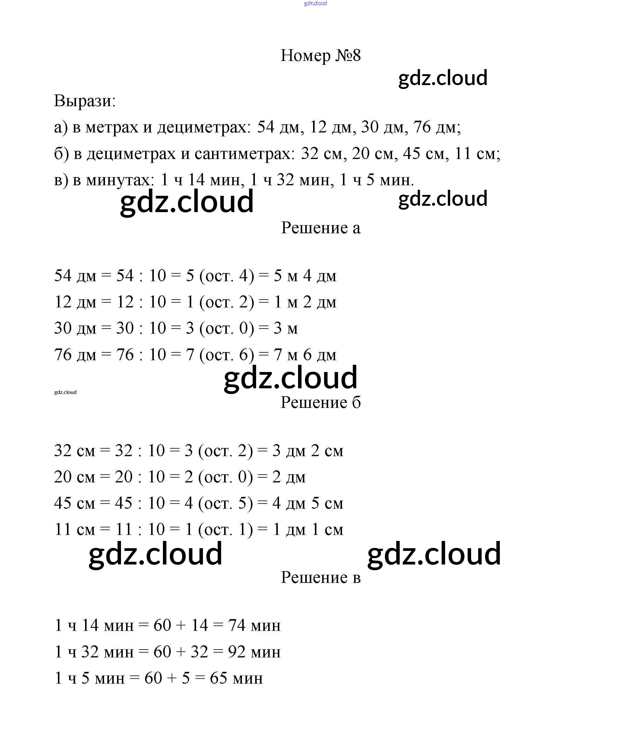 Ответ на задание 8 Учебник Математика за 3 (третий) класс Дорофеев, Миракова 2015 Часть 1, 2