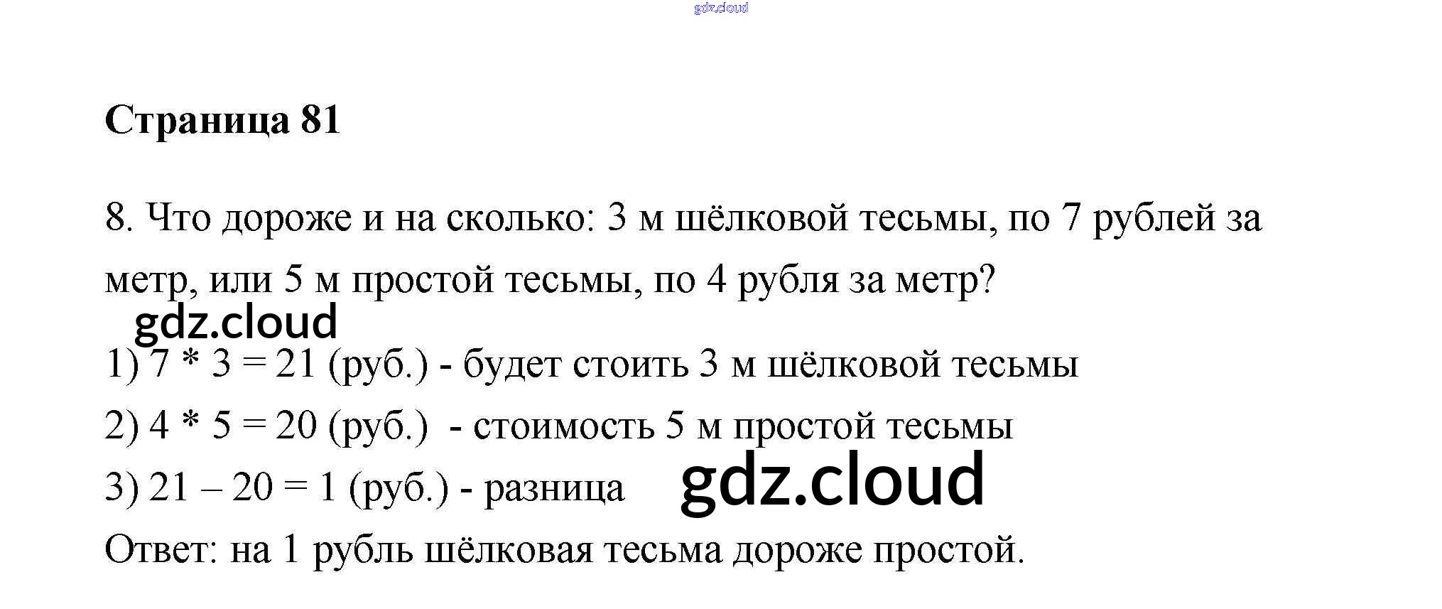 Ответ на задание 8 Учебник Математика за 3 (третий) класс Дорофеев, Миракова 2015 Часть 1, 2