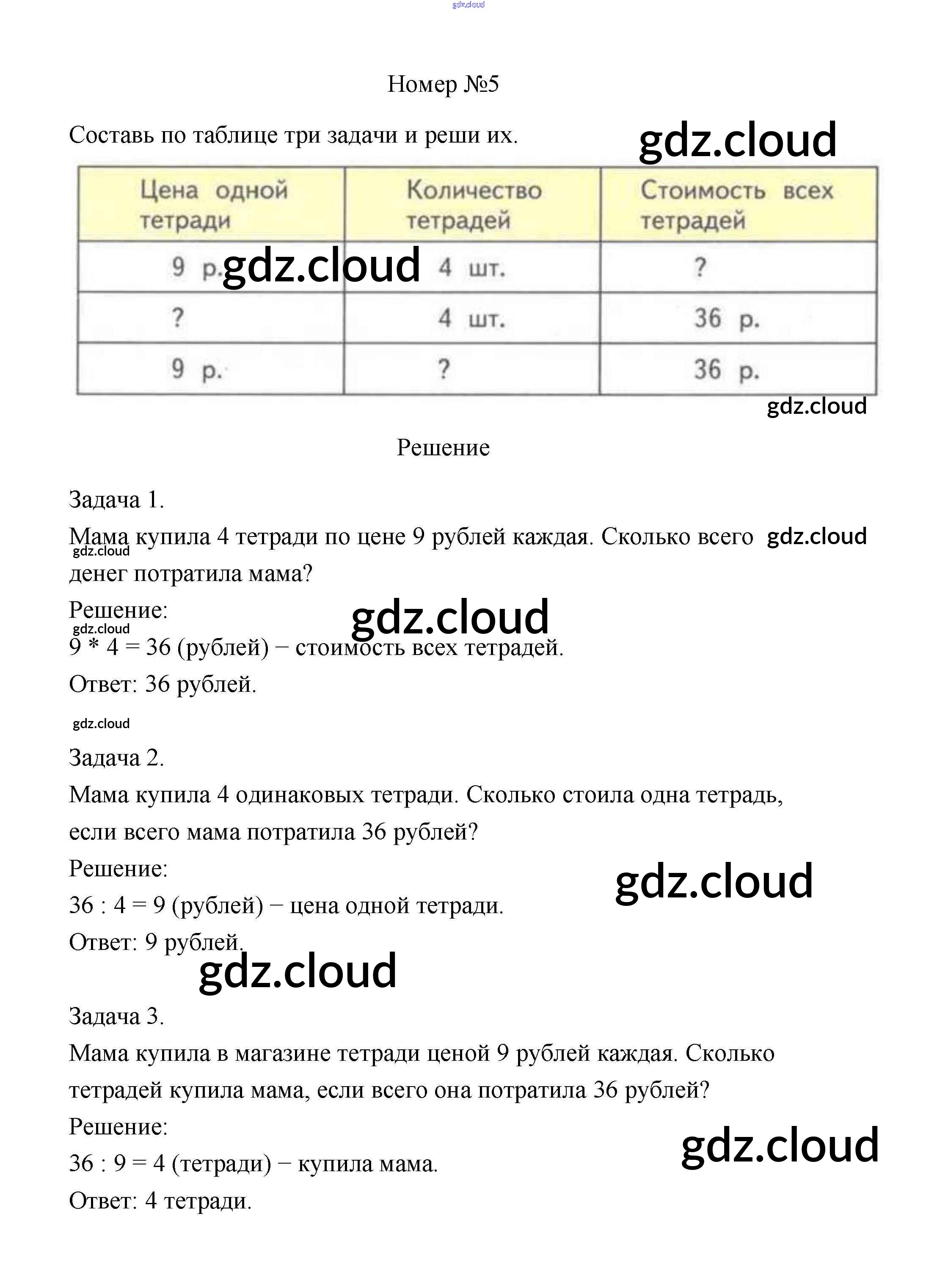 Ответ на задание 5 Учебник Математика за 3 (третий) класс Дорофеев, Миракова 2015 Часть 1, 2