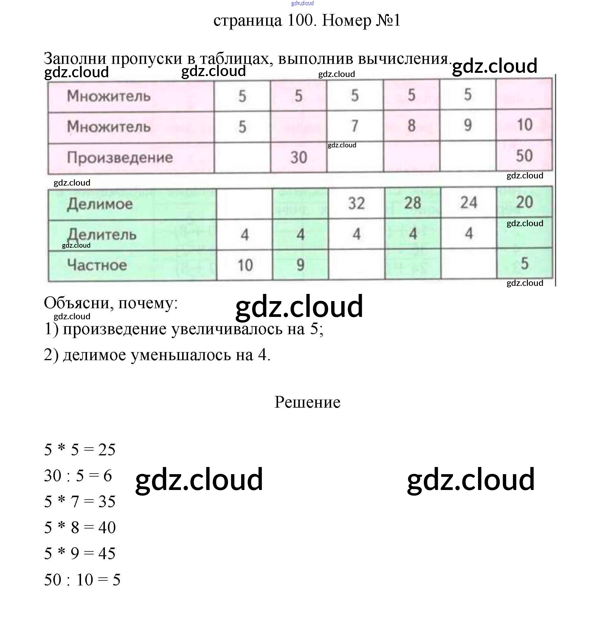 Страница 100 Ответы к части 1 по Математике 3 класс Учебник Дорофеев Часть 1, 2 Просвещение
