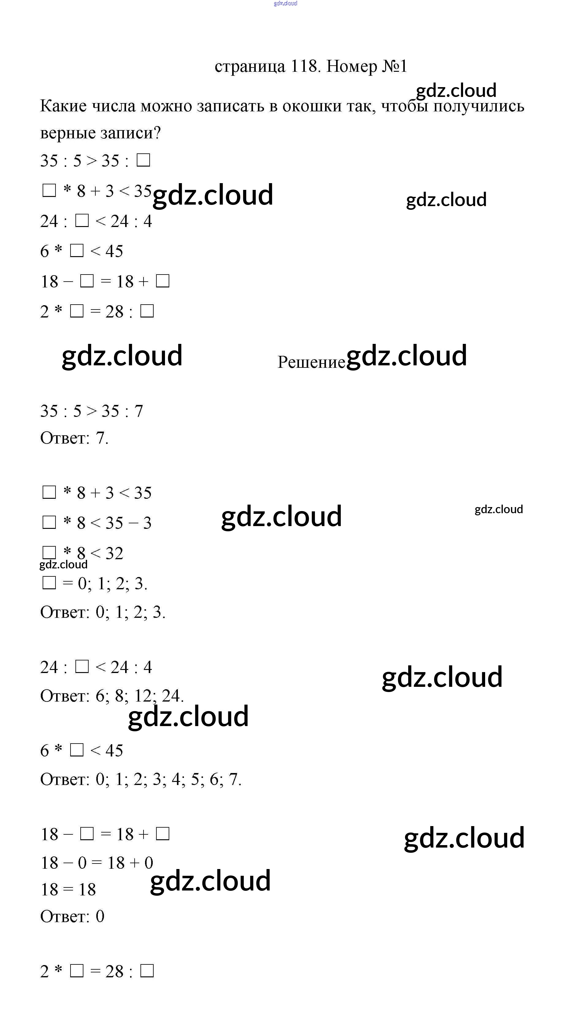 Страница 118 Ответы к части 1 по Математике 3 класс Учебник Дорофеев Часть 1, 2 Просвещение