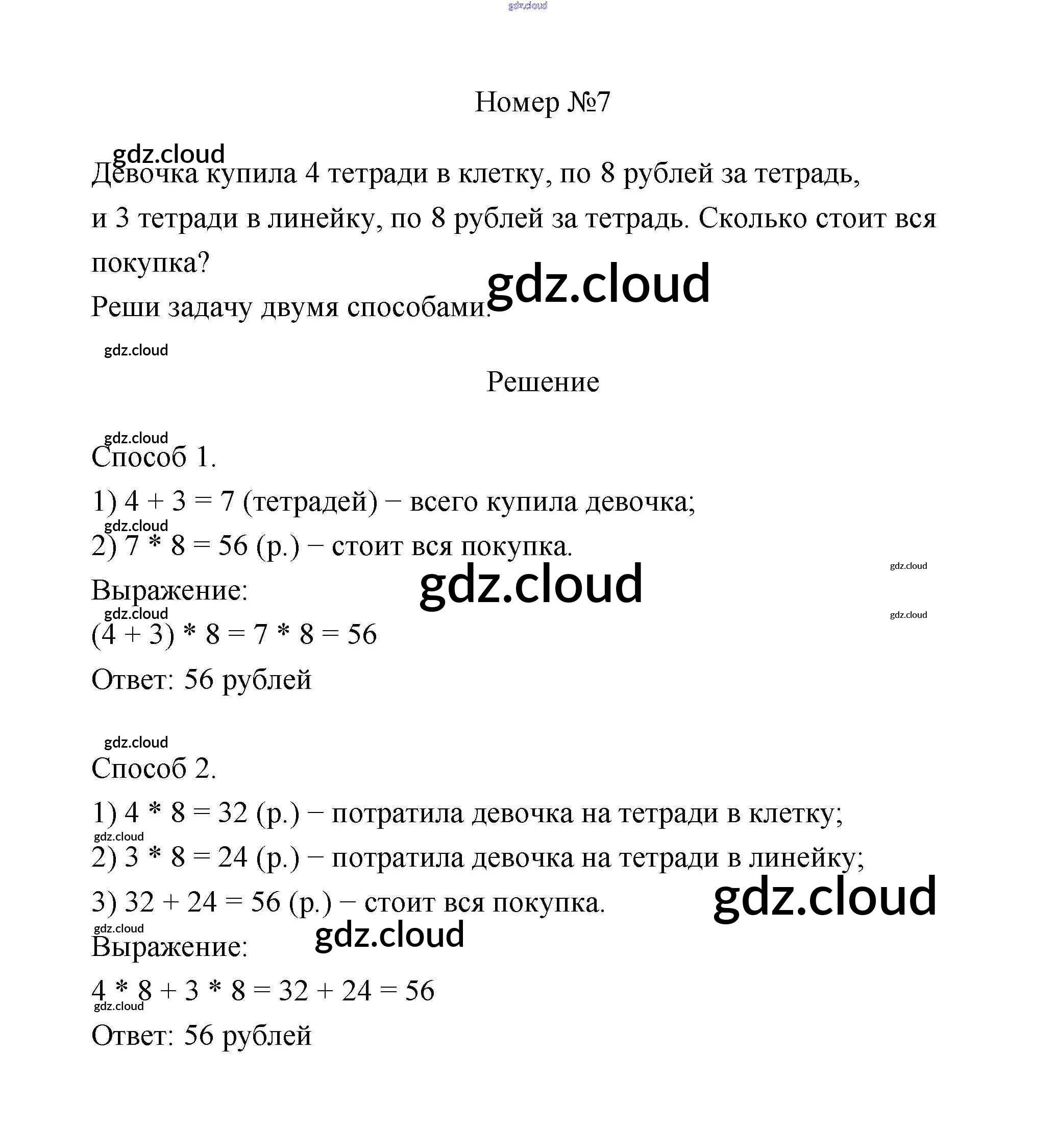 Ответ на задание 7 Учебник Математика за 3 (третий) класс Дорофеев, Миракова 2015 Часть 1, 2