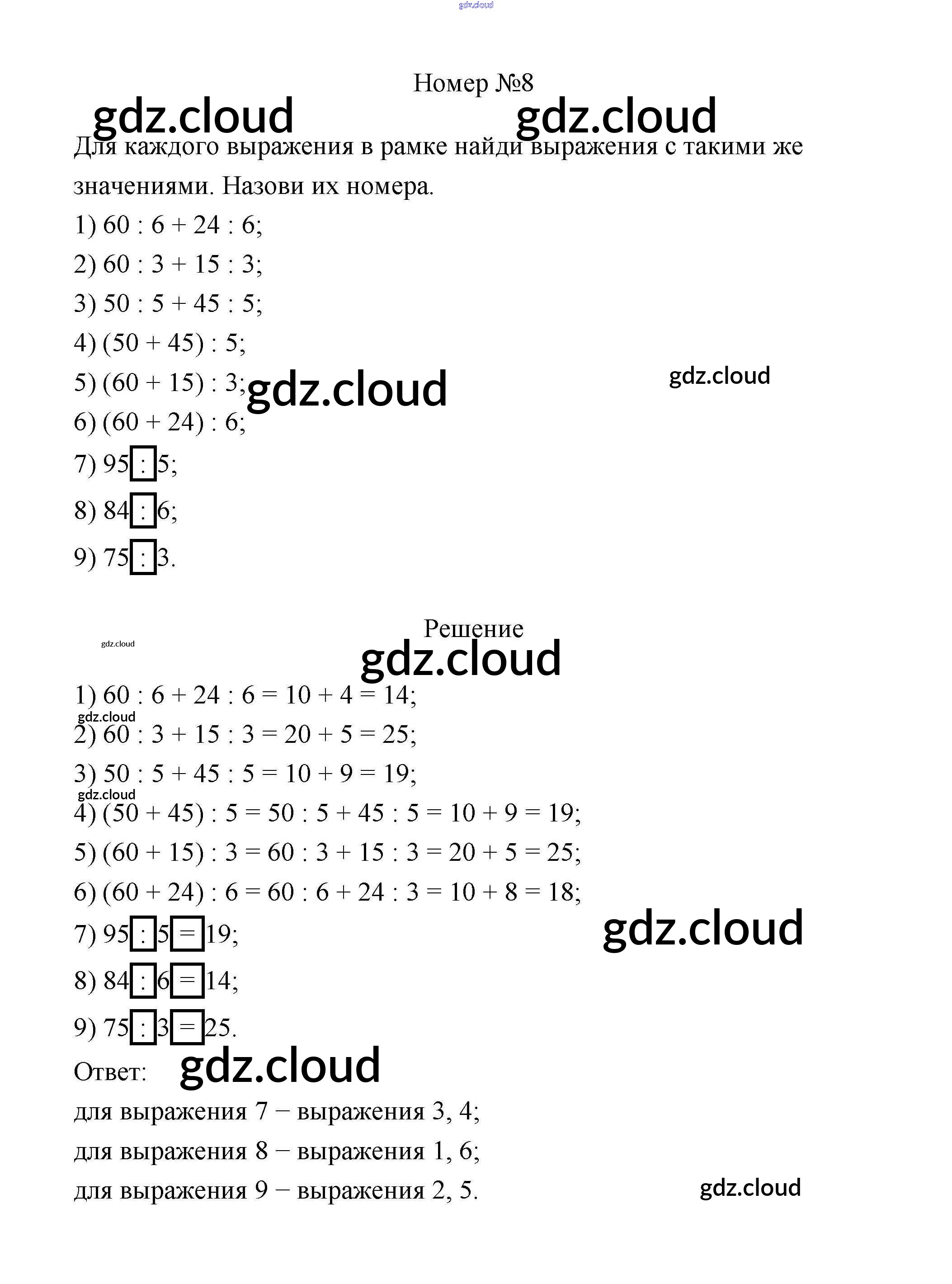 Ответ на задание 8 Учебник Математика за 3 (третий) класс Дорофеев, Миракова 2015 Часть 1, 2