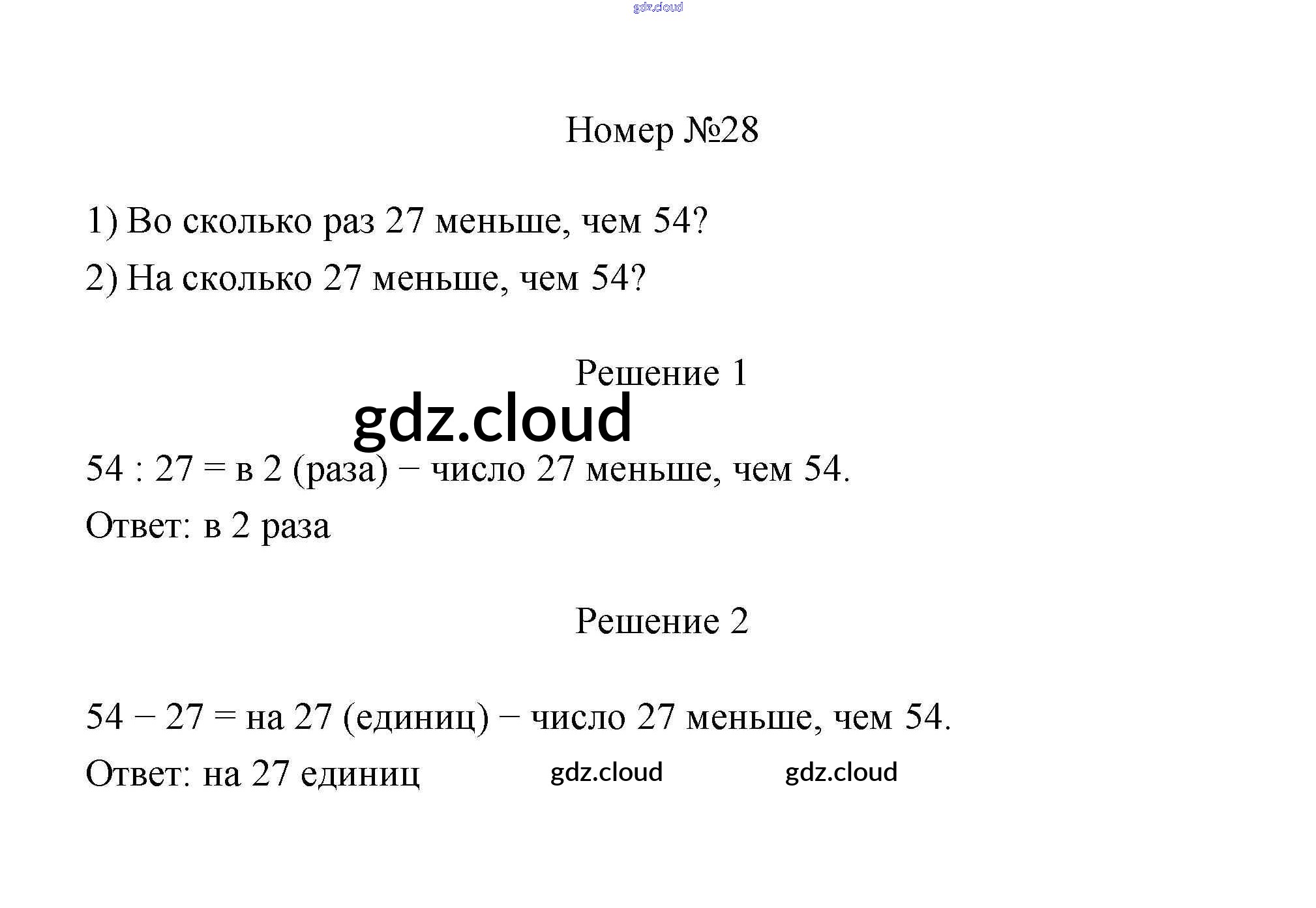 Ответ на задание 28 Учебник Математика за 3 (третий) класс Дорофеев, Миракова 2015 Часть 1, 2