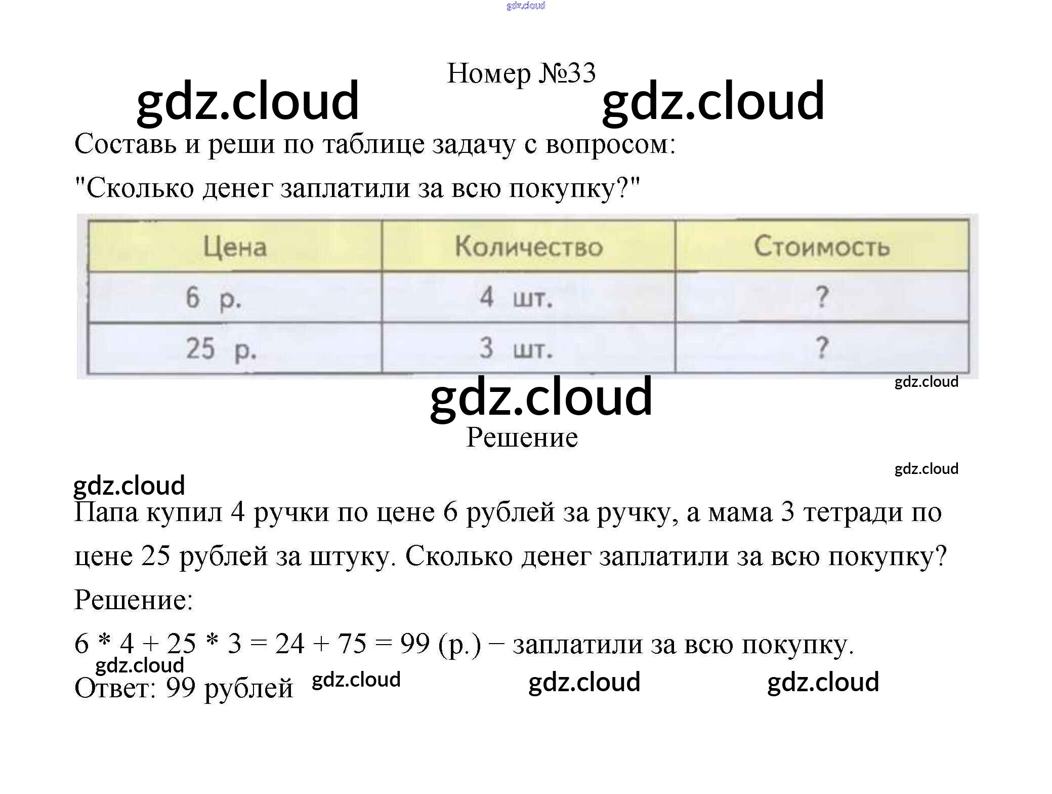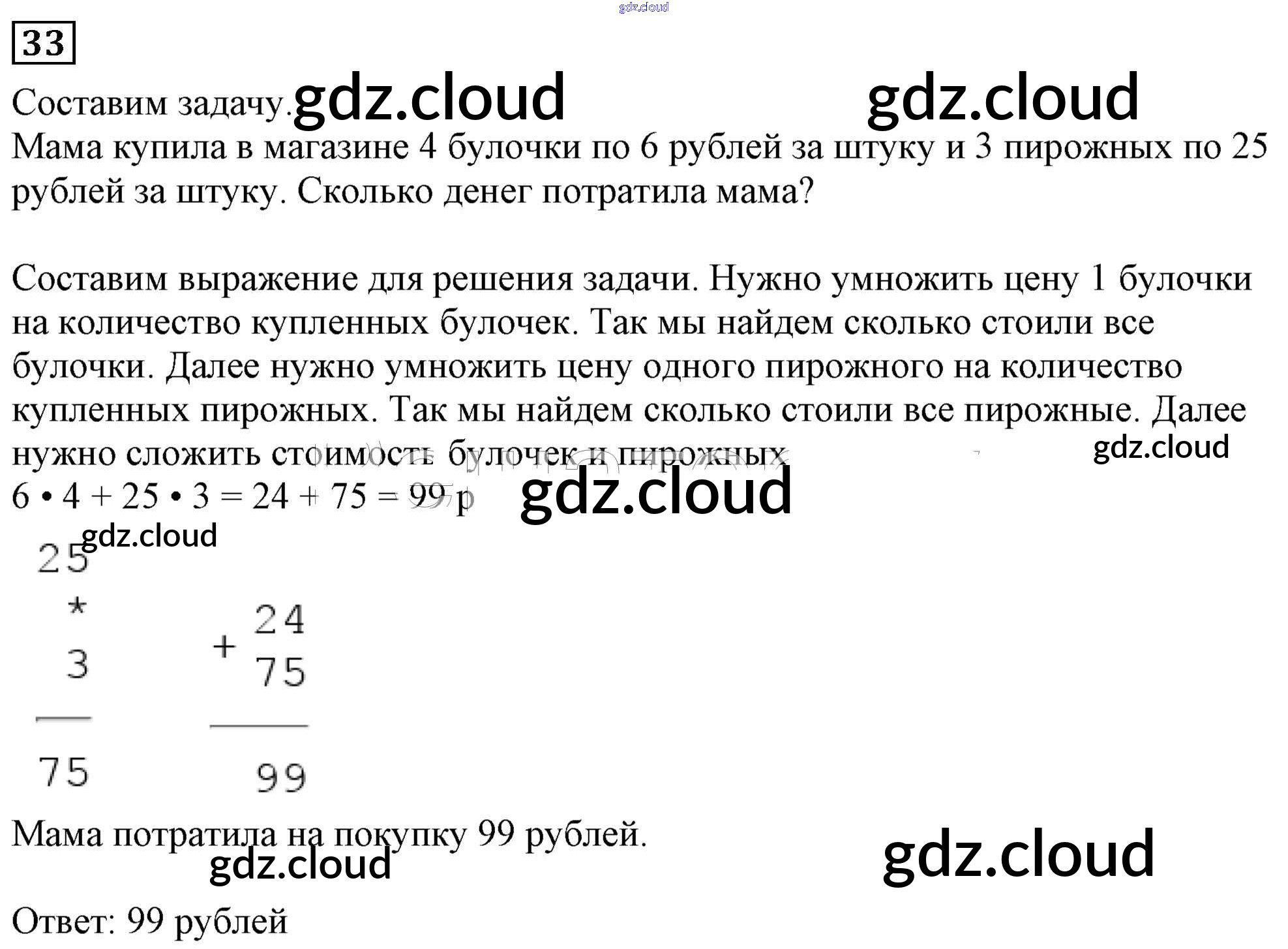 Ответ на задание 33 Учебник Математика за 3 (третий) класс Дорофеев, Миракова 2015 Часть 1, 2