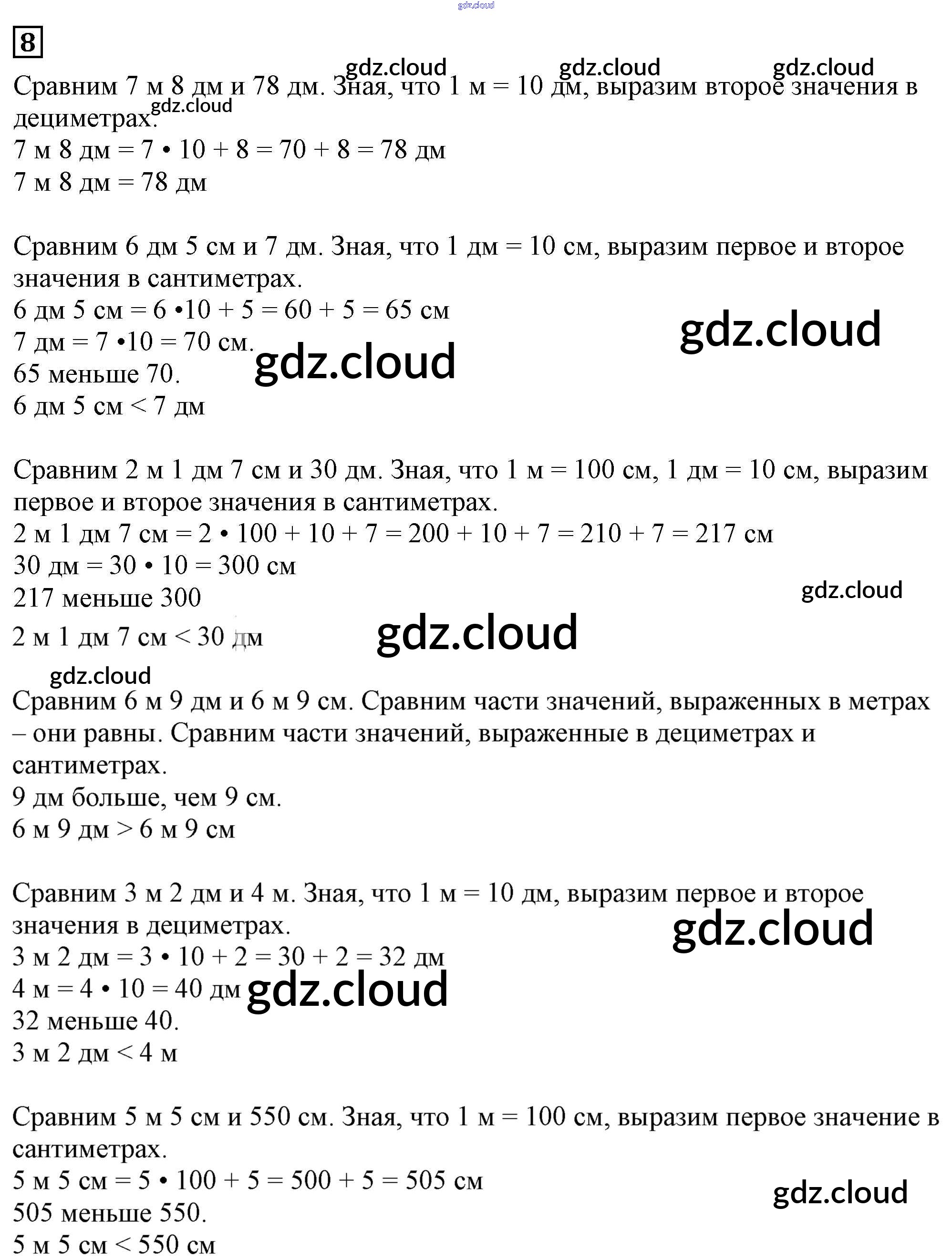 Ответ на задание 8 Учебник Математика за 3 (третий) класс Дорофеев, Миракова 2015 Часть 1, 2