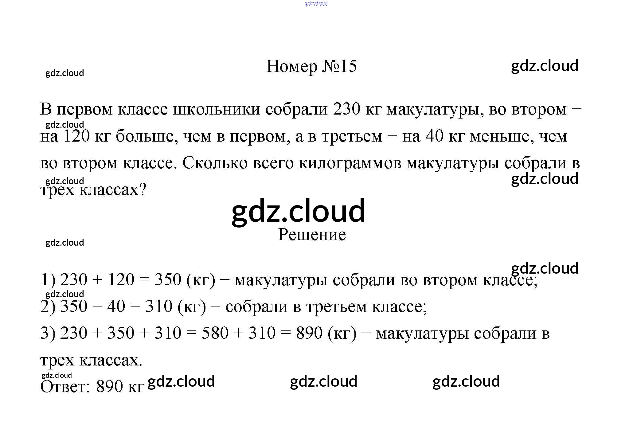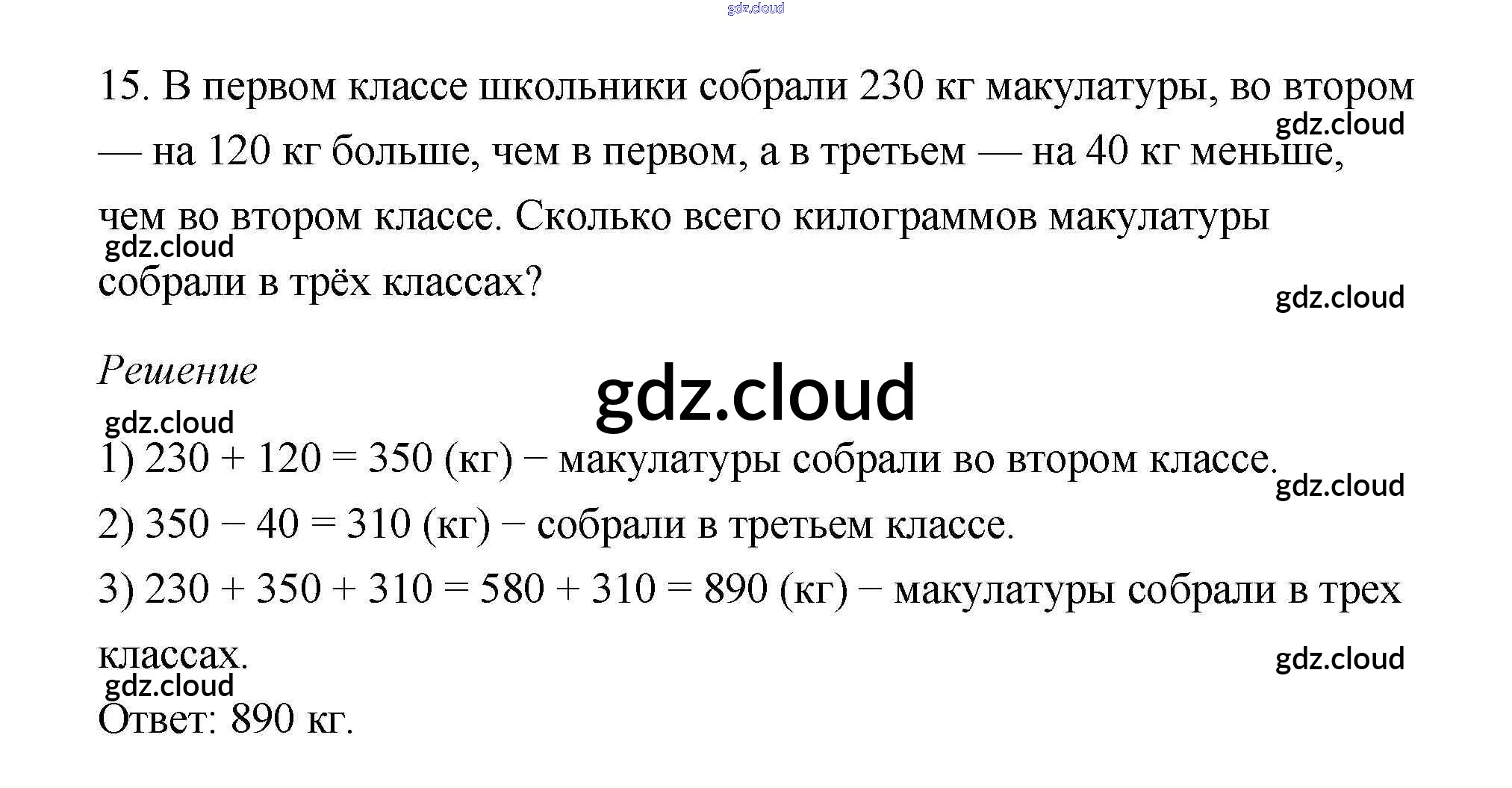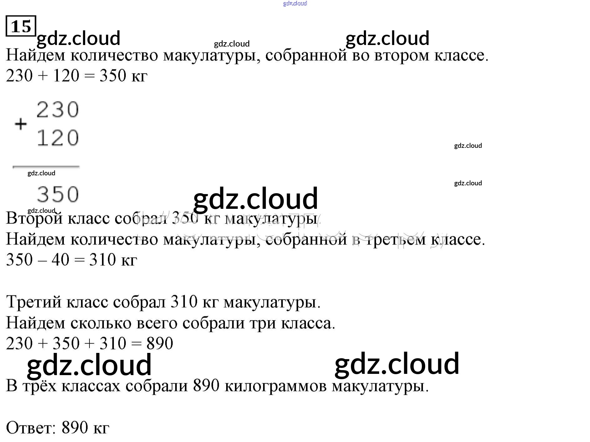Ответ на задание 15 Учебник Математика за 3 (третий) класс Дорофеев, Миракова 2015 Часть 1, 2