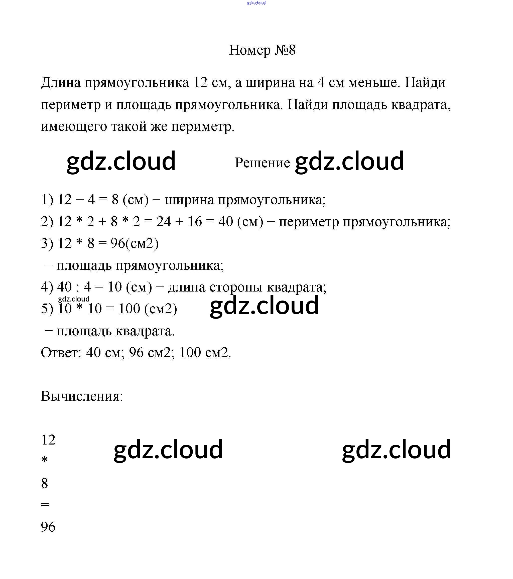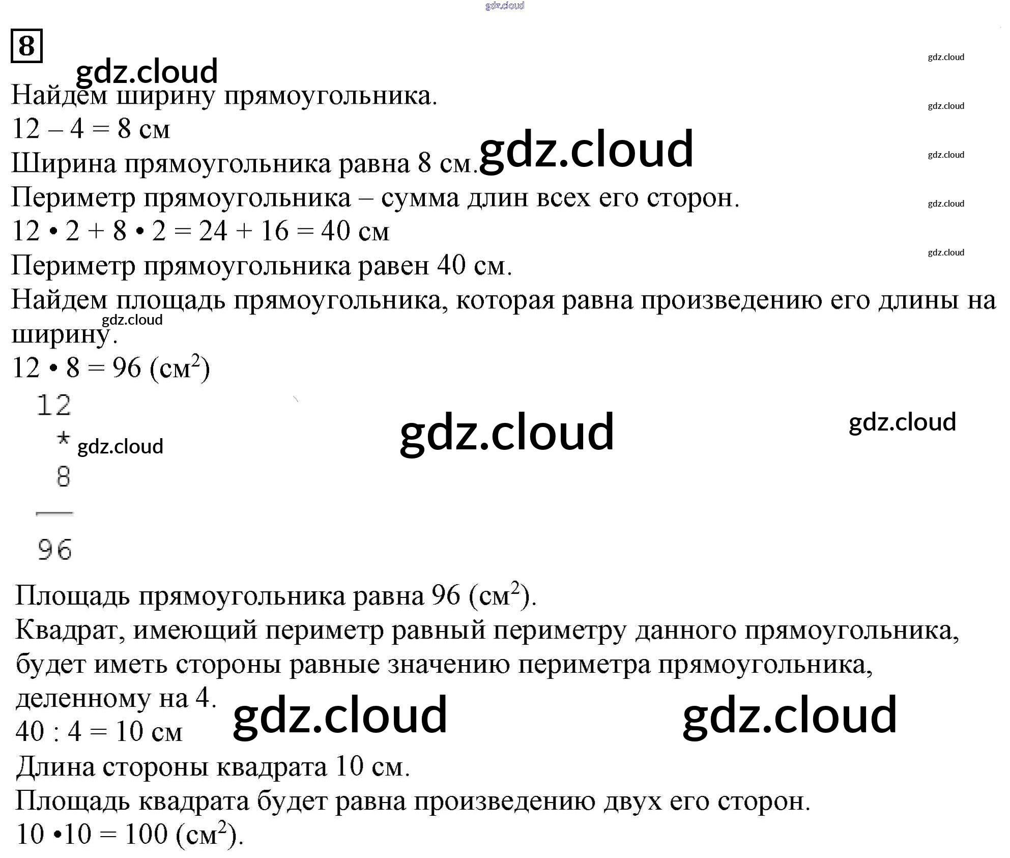 Ответ на задание 8 Учебник Математика за 3 (третий) класс Дорофеев, Миракова 2015 Часть 1, 2