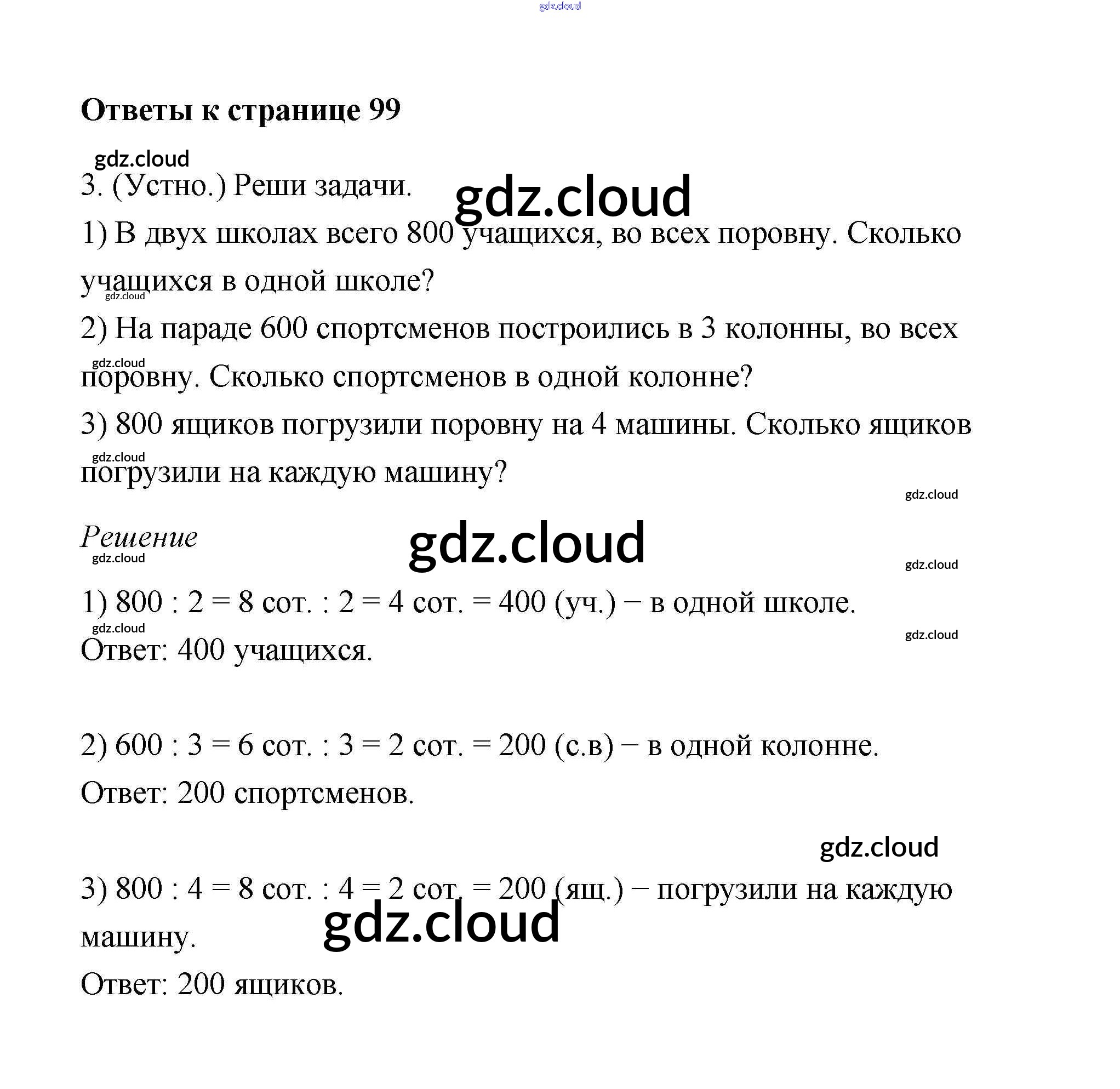 Страница 98 Ответы к части 2 по Математике 3 класс Учебник Дорофеев Часть 1, 2 Просвещение