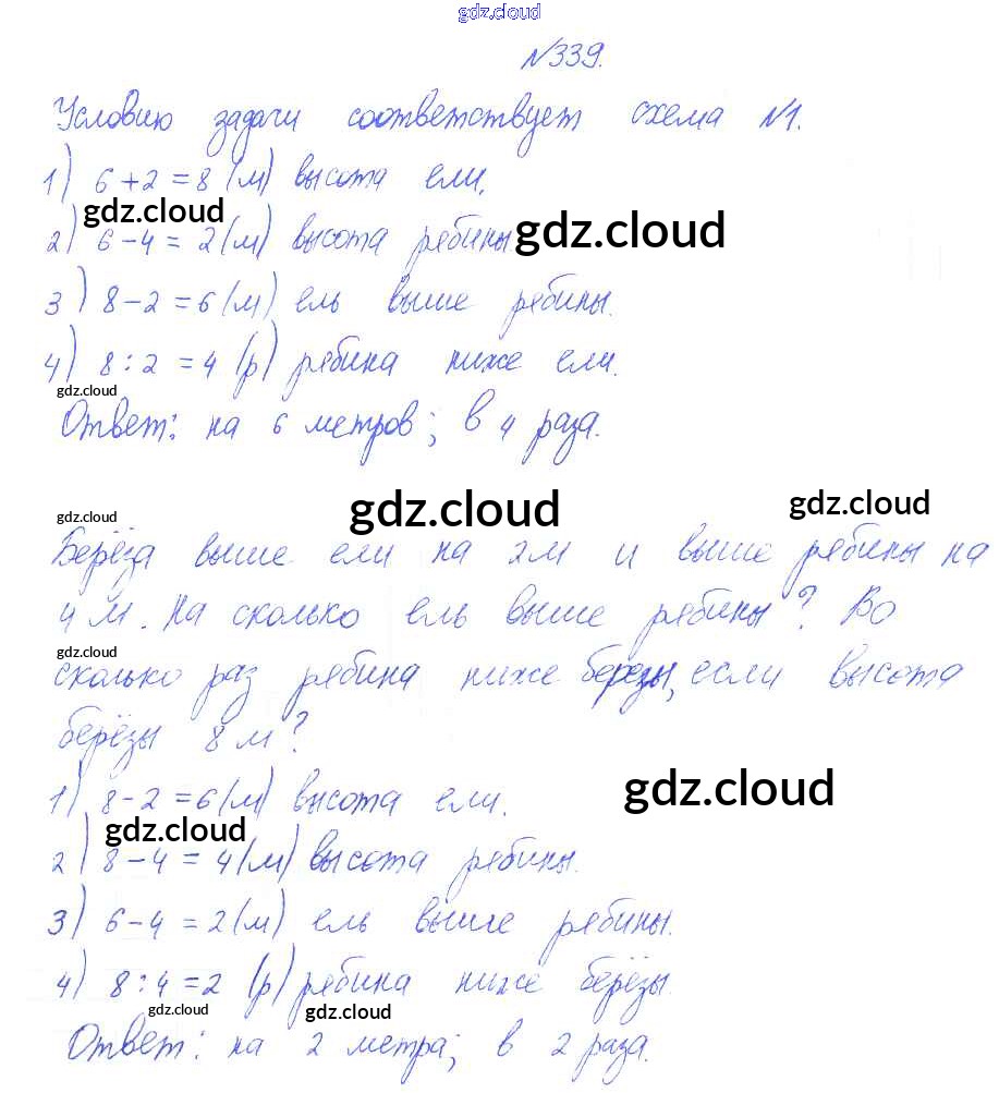 Ответ на задание 339 Учебник Математика за 3 (третий) класс Истомина Гармония 2014 Часть 1, 2 ФГОС онлайн и без номера телефона.