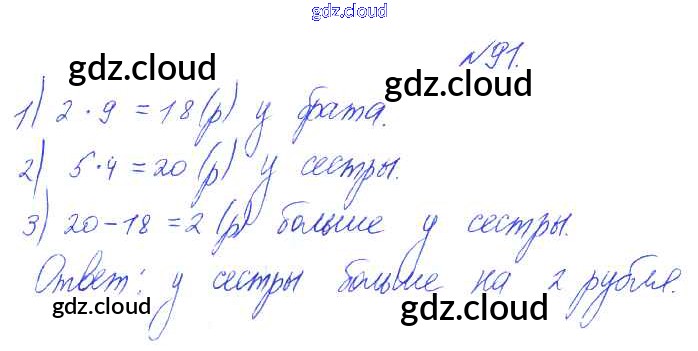 Ответ на задание 91 Учебник Математика за 3 (третий) класс Истомина Гармония 2014 Часть 1, 2 ФГОС онлайн и без номера телефона.