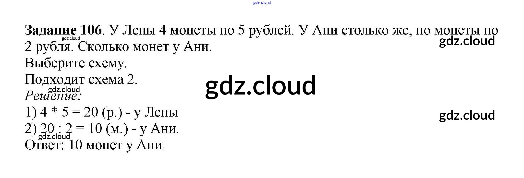 Ответ на задание 106 Учебник Математика за 3 (третий) класс Истомина Гармония 2014 Часть 1, 2
