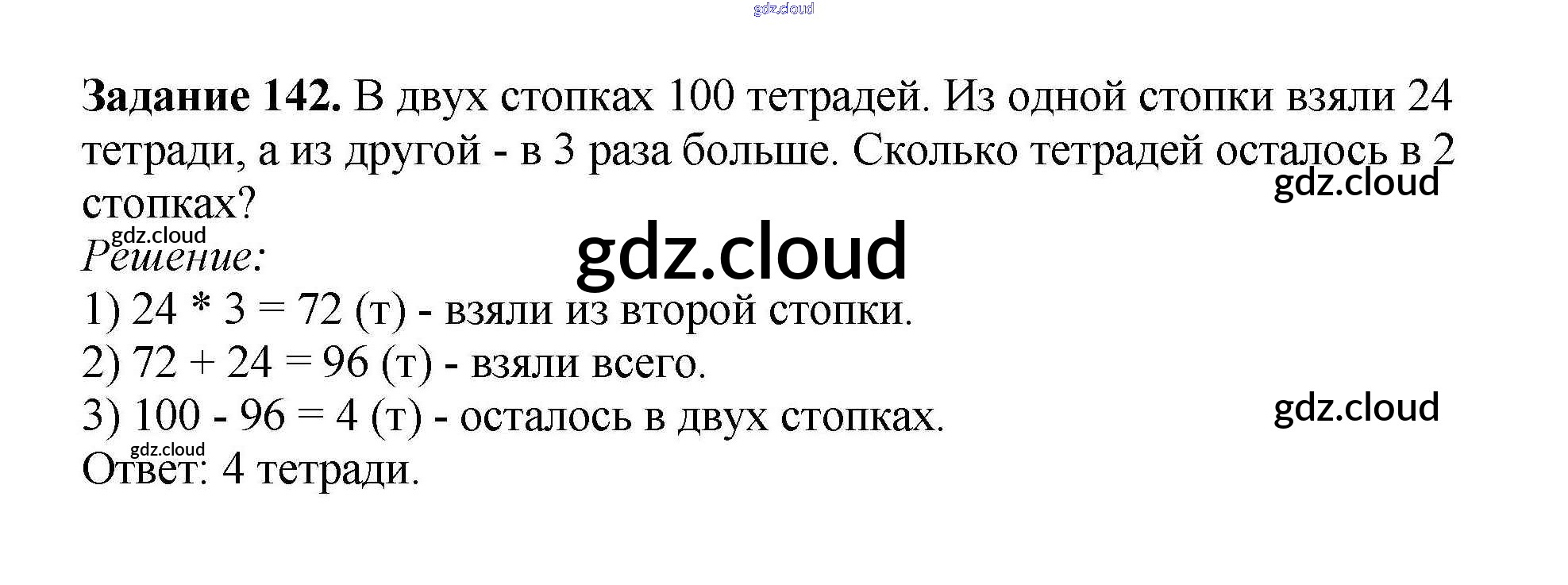 Ответ на задание 142 Учебник Математика за 3 (третий) класс Истомина Гармония 2014 Часть 1, 2