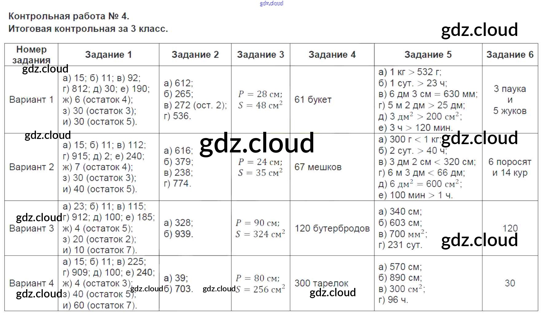 Ответ на задание 4 Контрольно-измерительные материалы (КИМ) Математика за 3 (третий) класс Ситникова 2017