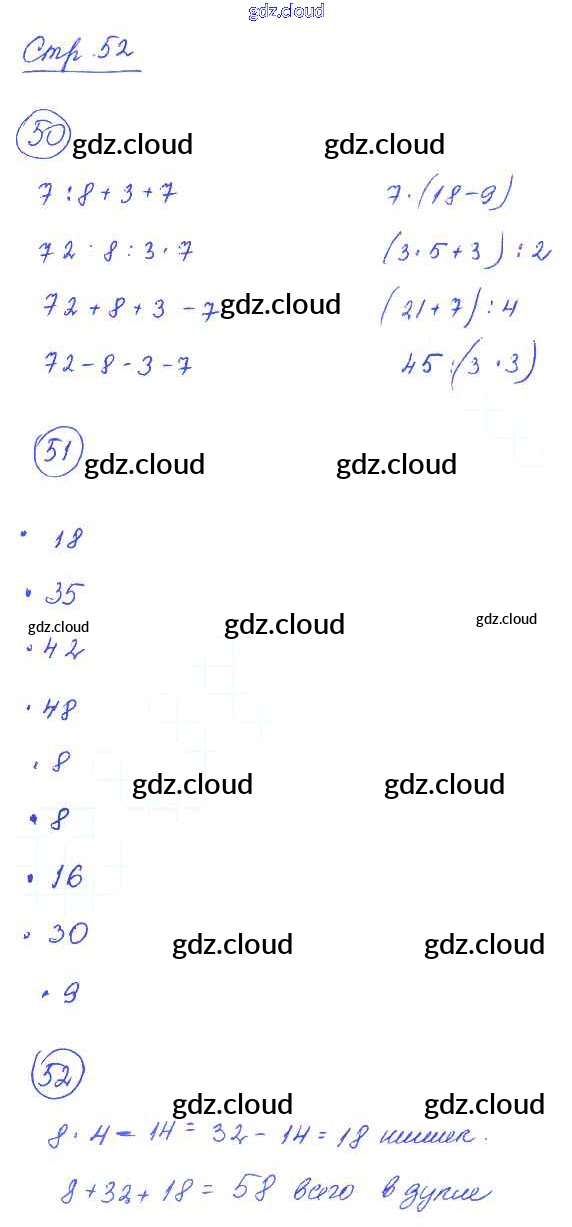 Ответ на задание 52 Рабочая тетрадь Математика за 3 (третий) класс Кремнева УМК 2018 Часть 1, 2 ФГОС онлайн и без номера телефона.