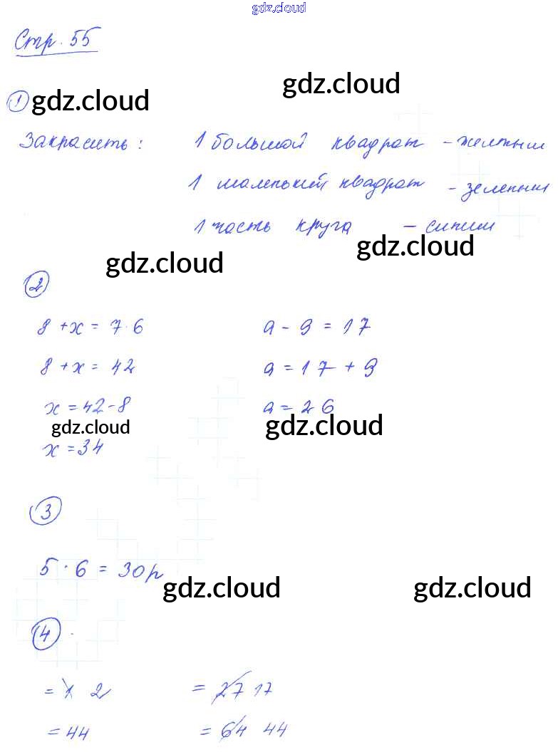 Ответ на задание 55 Рабочая тетрадь Математика за 3 (третий) класс Кремнева УМК 2018 Часть 1, 2 ФГОС онлайн и без номера телефона.