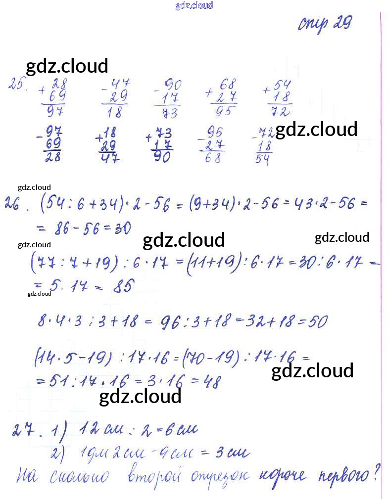 Ответ на задание 29 Рабочая тетрадь Математика за 3 (третий) класс Кремнева УМК 2018 Часть 1, 2 ФГОС онлайн и без номера телефона.