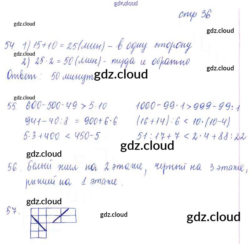 Ответ на задание 36 Рабочая тетрадь Математика за 3 (третий) класс Кремнева УМК 2018 Часть 1, 2 ФГОС онлайн и без номера телефона.