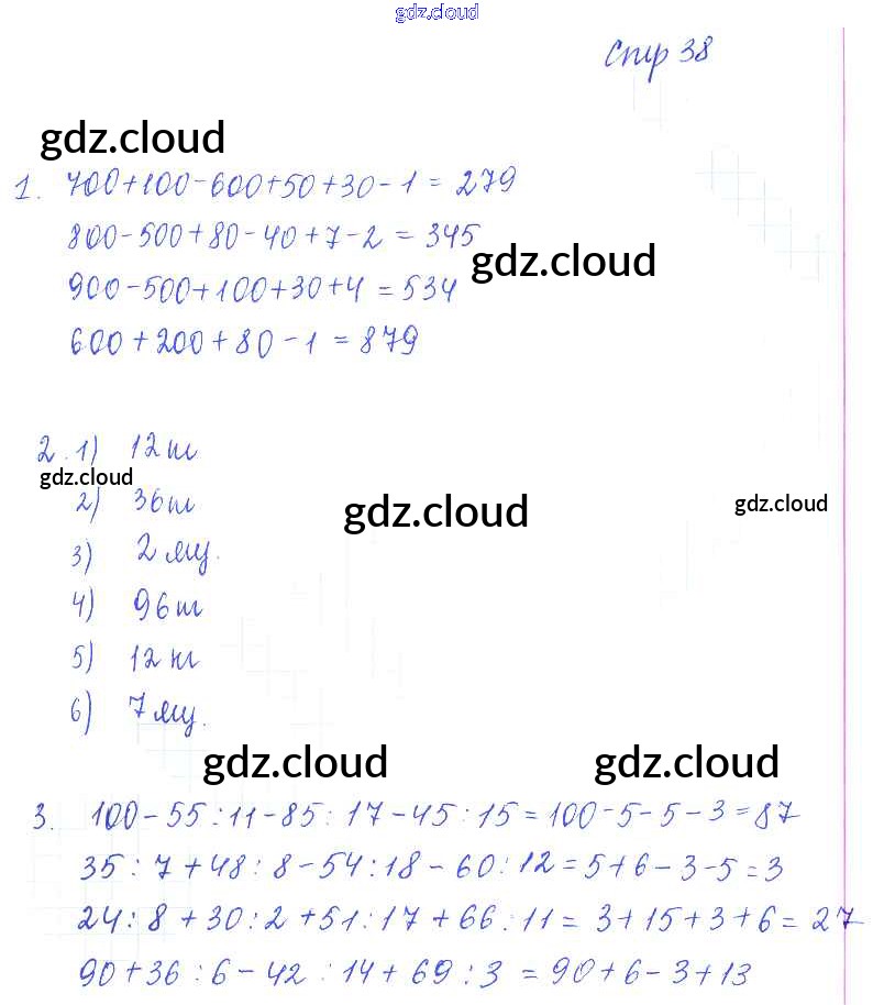 Ответ на задание 38 Рабочая тетрадь Математика за 3 (третий) класс Кремнева УМК 2018 Часть 1, 2 ФГОС онлайн и без номера телефона.