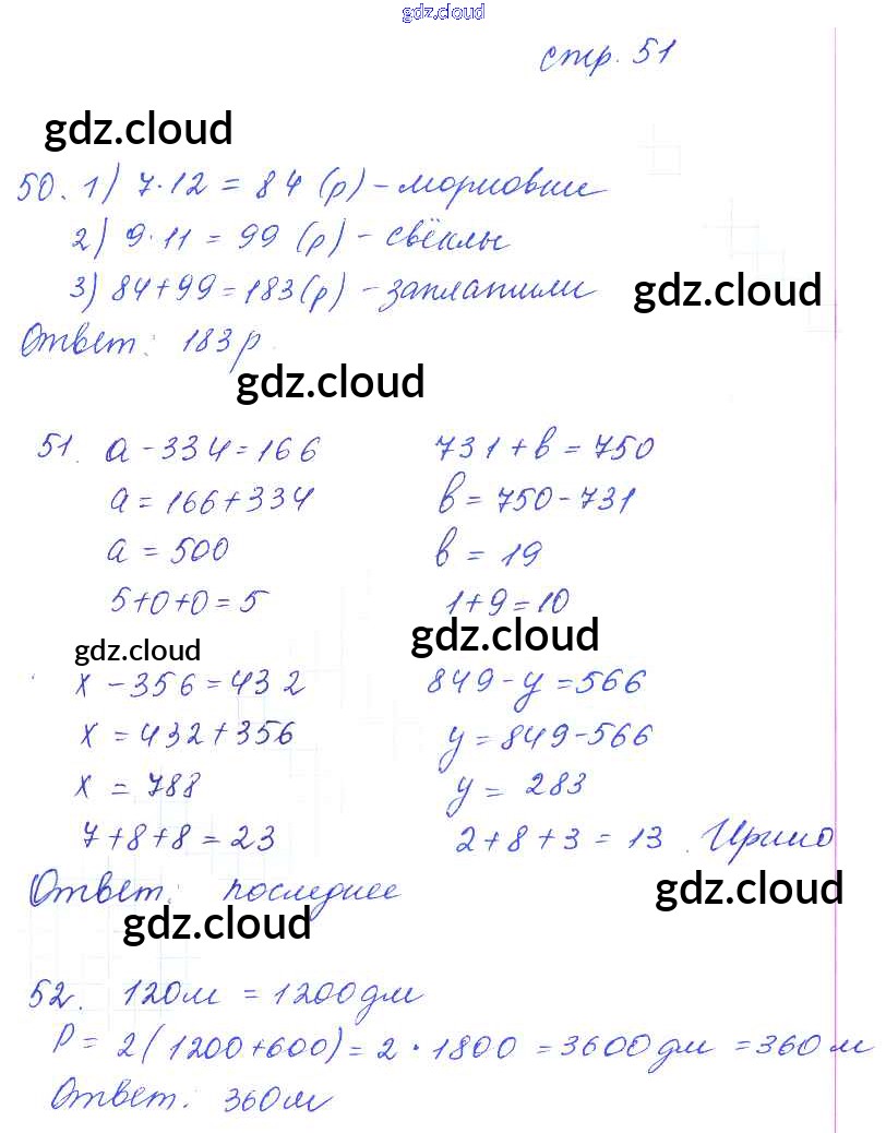 Ответ на задание 51 Рабочая тетрадь Математика за 3 (третий) класс Кремнева УМК 2018 Часть 1, 2 ФГОС онлайн и без номера телефона.