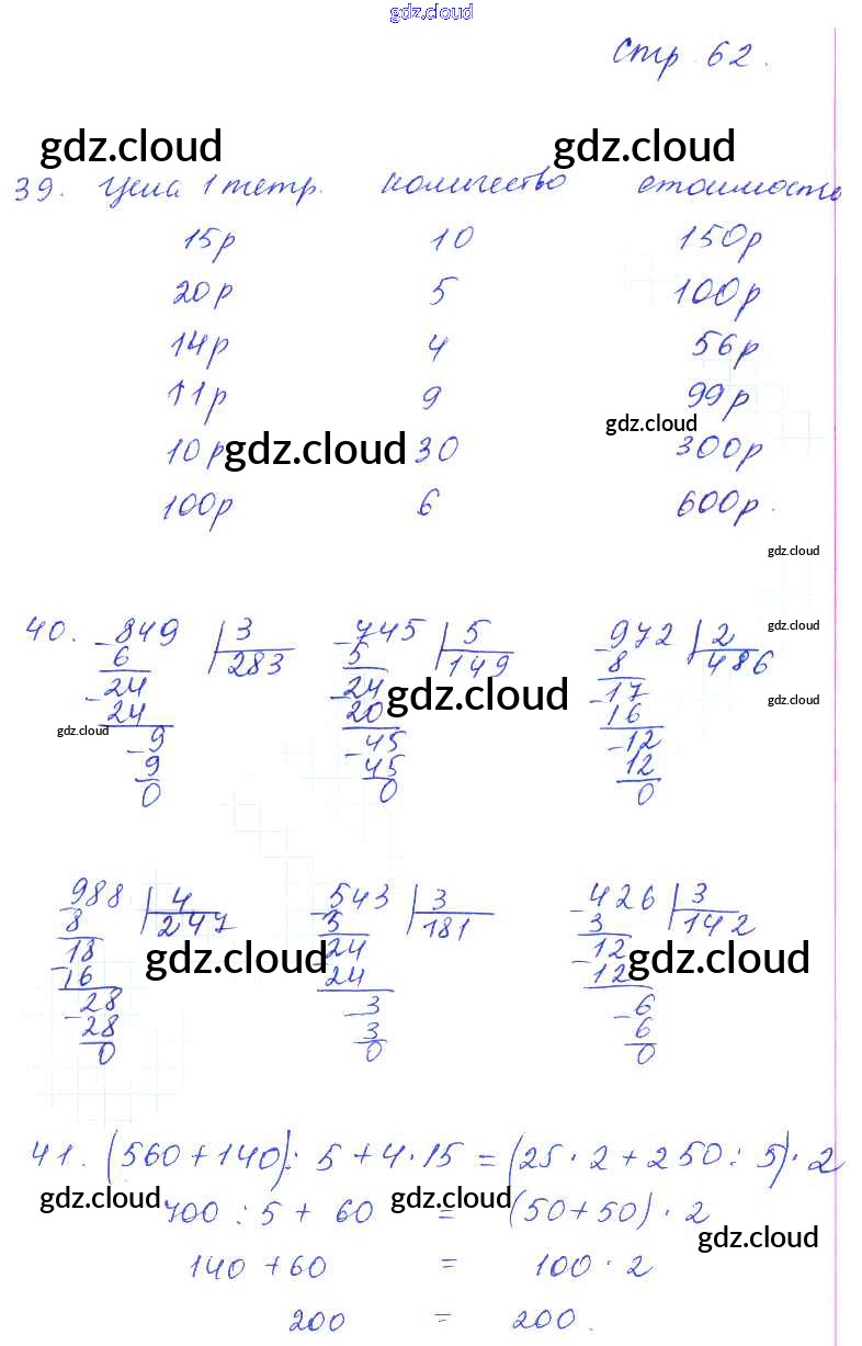 Ответ на задание 62 Рабочая тетрадь Математика за 3 (третий) класс Кремнева УМК 2018 Часть 1, 2 ФГОС онлайн и без номера телефона.