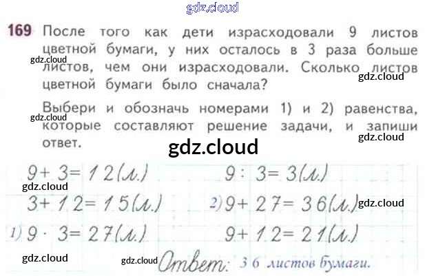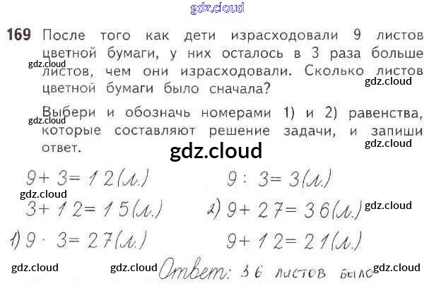 Ответ на задание 169 Рабочая тетрадь Математика за 3 (третий) класс Моро, Волкова Школа России 2016 Часть 1, 2