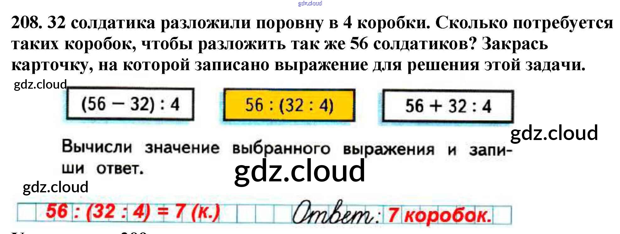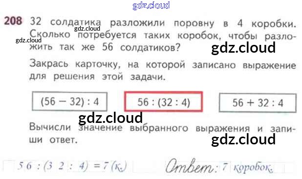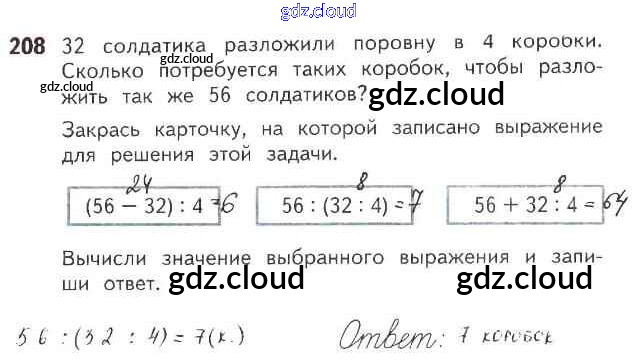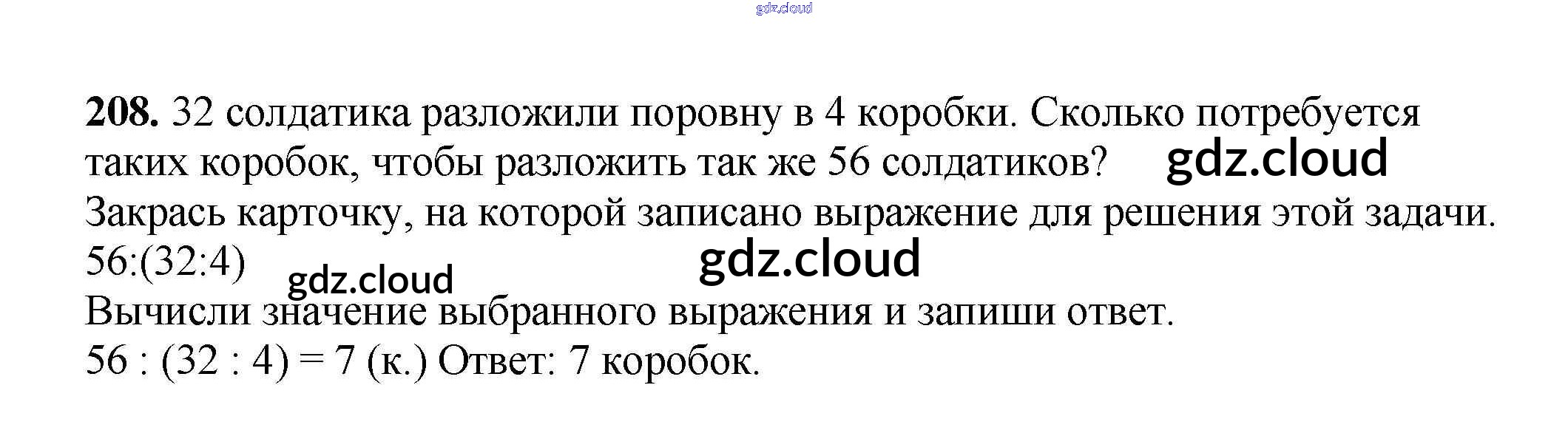 Ответ на задание 208 Рабочая тетрадь Математика за 3 (третий) класс Моро, Волкова Школа России 2016 Часть 1, 2