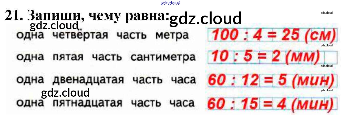 Ответ на задание 21 Рабочая тетрадь Математика за 3 (третий) класс Моро, Волкова Школа России 2016 Часть 1, 2