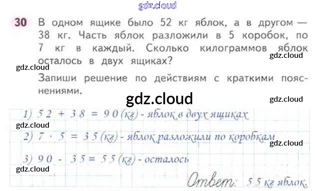 Ответ на задание 30 Рабочая тетрадь Математика за 3 (третий) класс Моро, Волкова Школа России 2016 Часть 1, 2