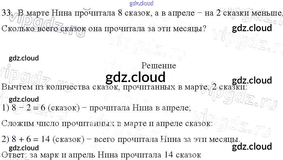 Ответ на задание 33 Учебник Математика за 3 (третий) класс Моро, Бантова, Бельтюкова, Волкова, Степанова Школа России 2015 Часть 1, 2