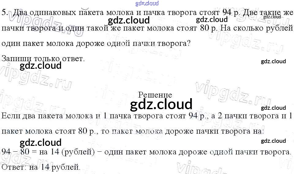 Ответ на задание 5 Учебник Математика за 3 (третий) класс Моро, Бантова, Бельтюкова, Волкова, Степанова Школа России 2015 Часть 1, 2