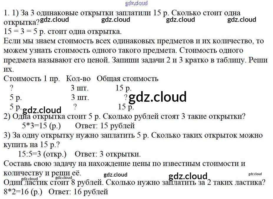 Ответ на задание 1 Учебник Математика за 3 (третий) класс Моро, Бантова, Бельтюкова, Волкова, Степанова Школа России 2015 Часть 1, 2