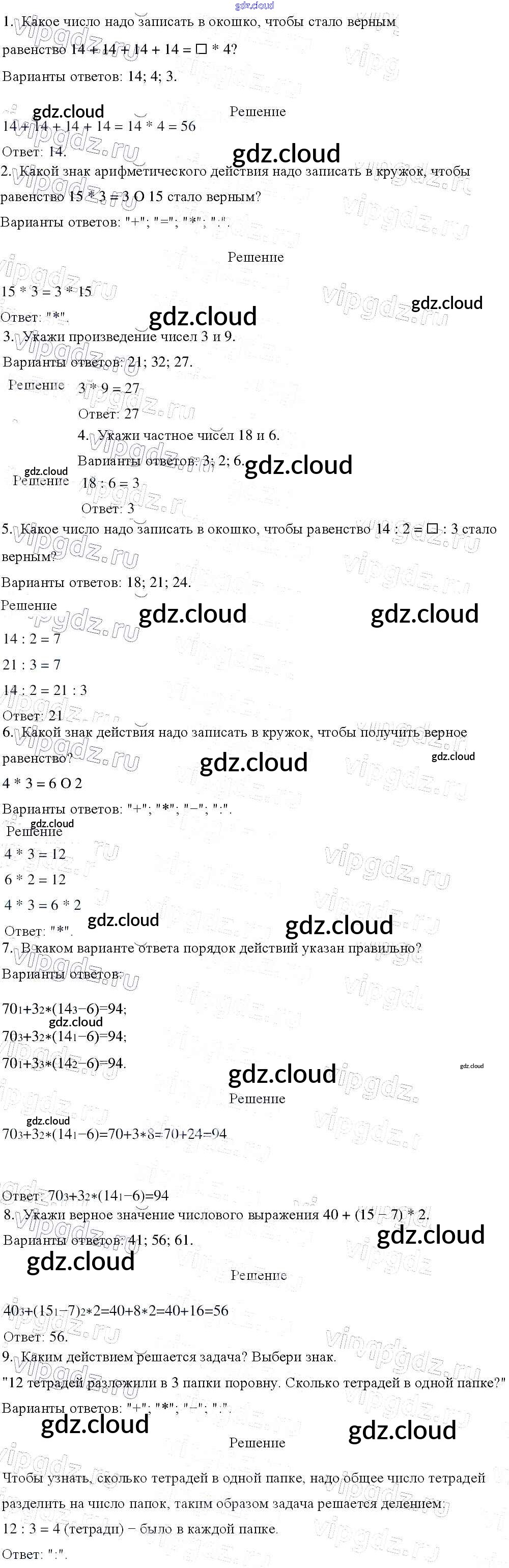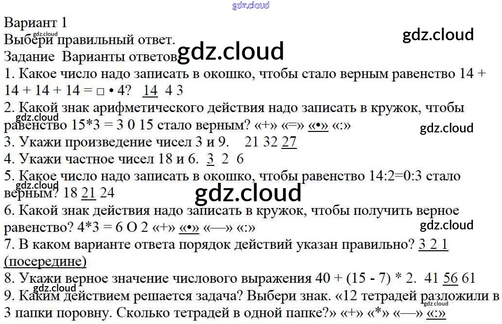 Ответ на задание Вариант 1 Учебник Математика за 3 (третий) класс Моро, Бантова, Бельтюкова, Волкова, Степанова Школа России 2015 Часть 1, 2