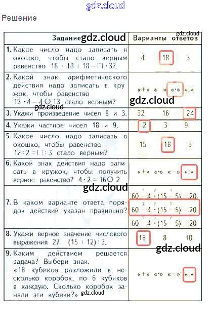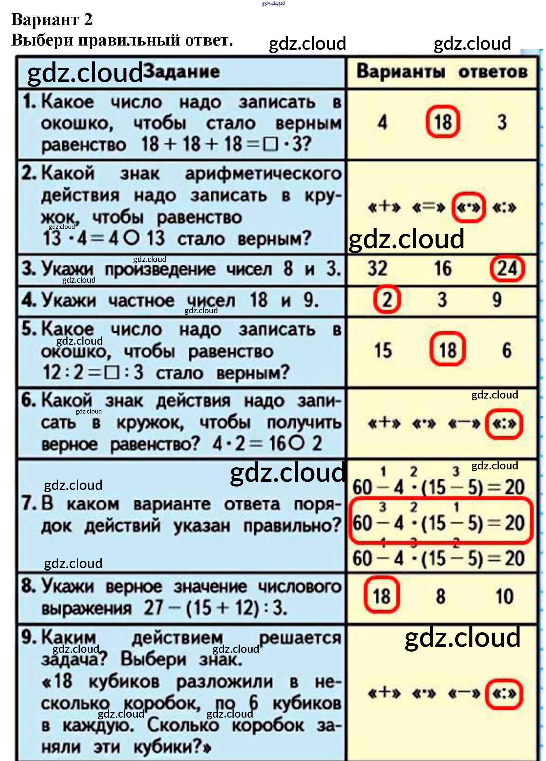 Ответ на задание Вариант 2 Учебник Математика за 3 (третий) класс Моро, Бантова, Бельтюкова, Волкова, Степанова Школа России 2015 Часть 1, 2