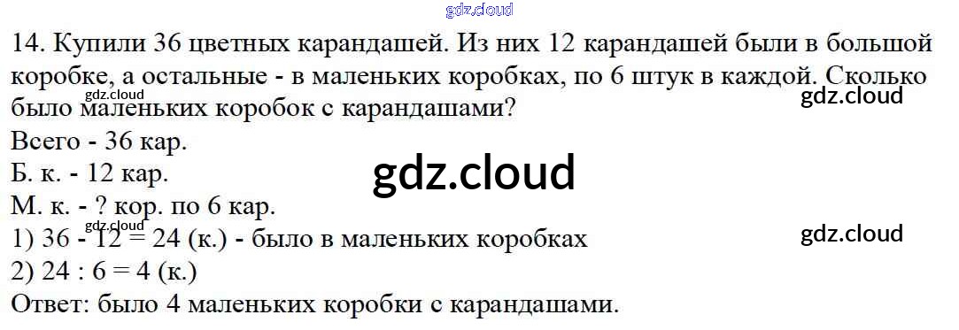 Ответ на задание 14 Учебник Математика за 3 (третий) класс Моро, Бантова, Бельтюкова, Волкова, Степанова Школа России 2015 Часть 1, 2