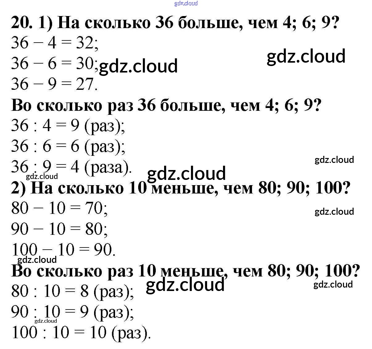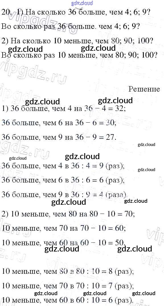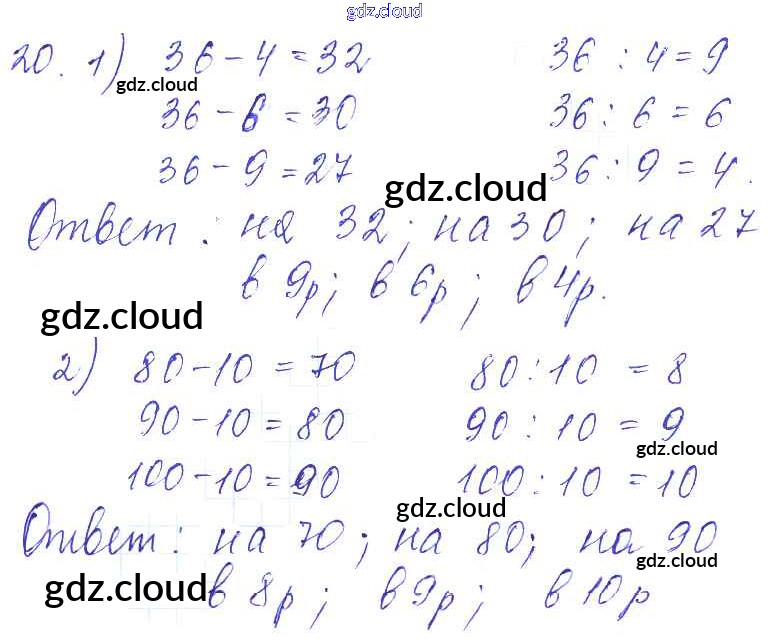 Ответ на задание 20 Учебник Математика за 3 (третий) класс Моро, Бантова, Бельтюкова, Волкова, Степанова Школа России 2015 Часть 1, 2