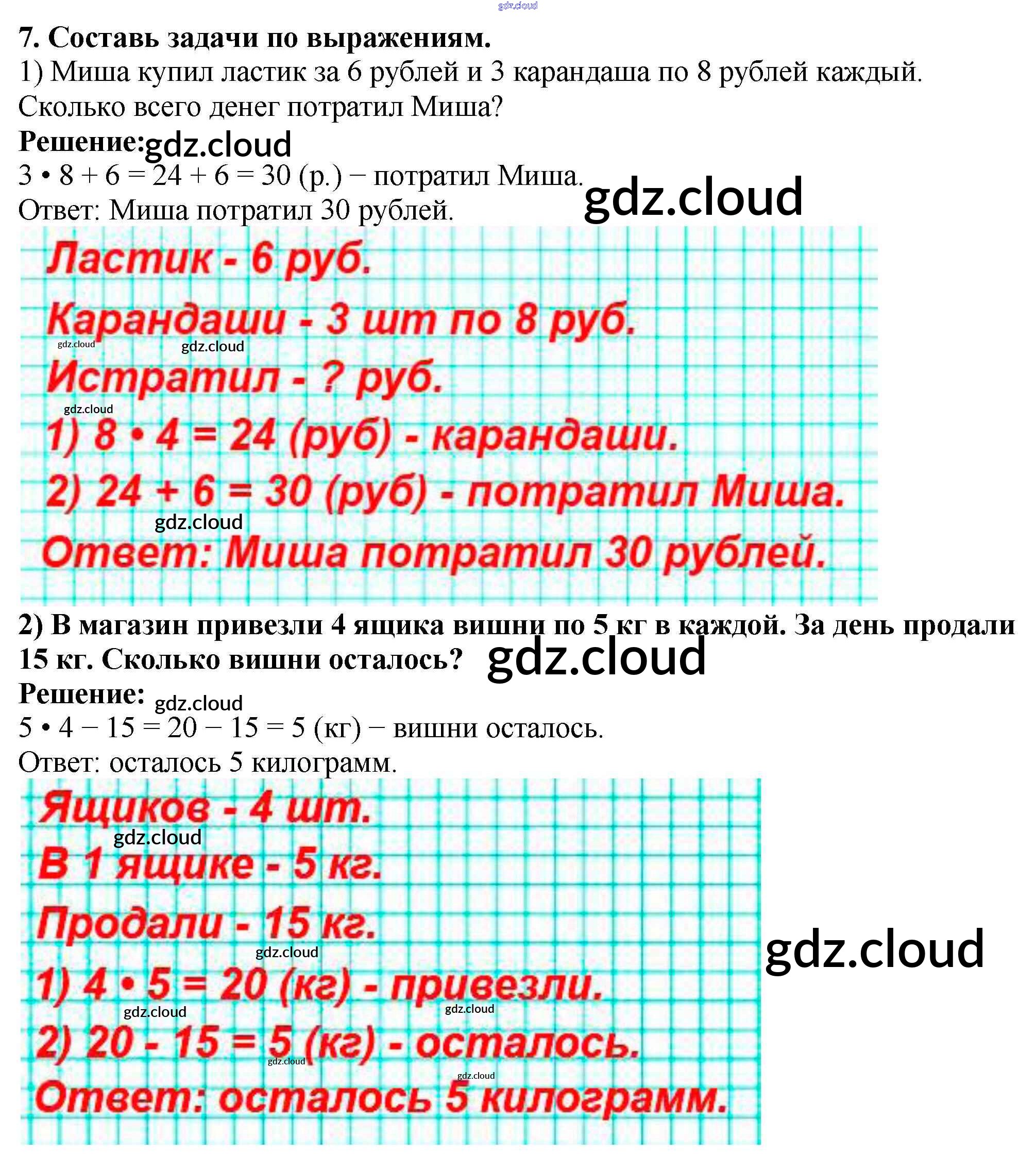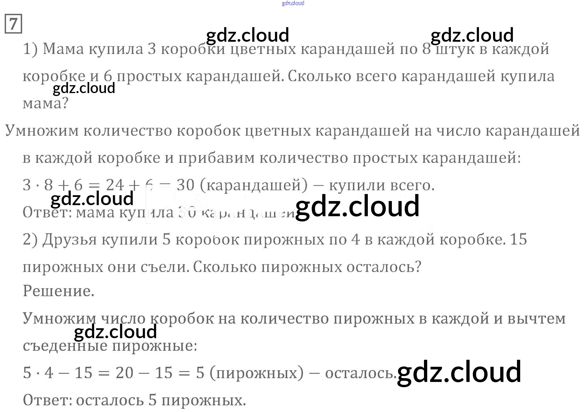 Ответ на задание 7 Учебник Математика за 3 (третий) класс Моро, Бантова, Бельтюкова, Волкова, Степанова Школа России 2015 Часть 1, 2