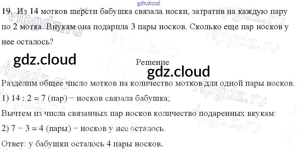 Ответ на задание 19 Учебник Математика за 3 (третий) класс Моро, Бантова, Бельтюкова, Волкова, Степанова Школа России 2015 Часть 1, 2