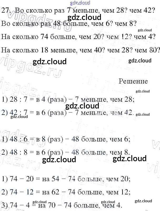 Ответ на задание 27 Учебник Математика за 3 (третий) класс Моро, Бантова, Бельтюкова, Волкова, Степанова Школа России 2015 Часть 1, 2