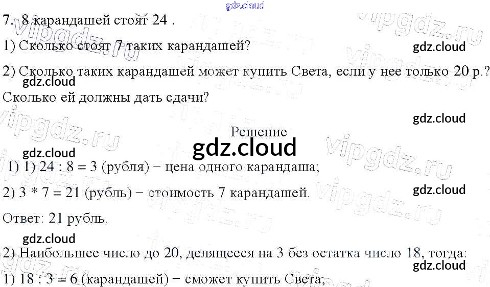 Ответ на задание 7 Учебник Математика за 3 (третий) класс Моро, Бантова, Бельтюкова, Волкова, Степанова Школа России 2015 Часть 1, 2
