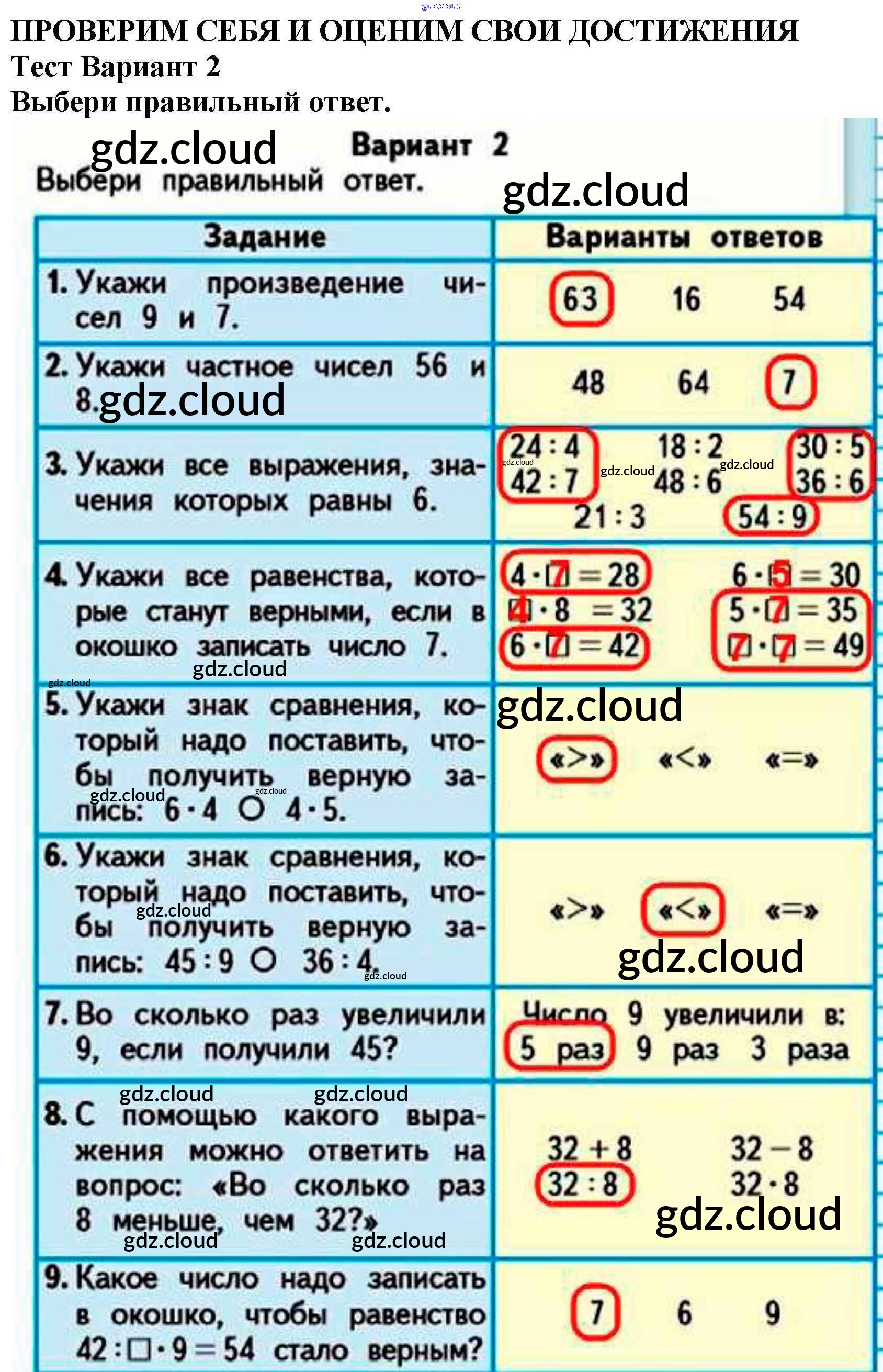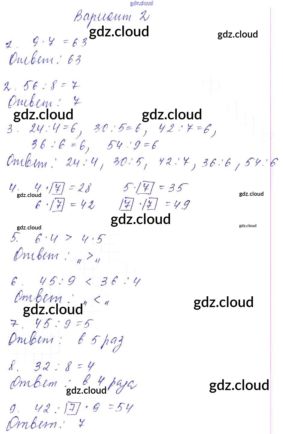 Ответ на задание Вариант 2 Учебник Математика за 3 (третий) класс Моро, Бантова, Бельтюкова, Волкова, Степанова Школа России 2015 Часть 1, 2