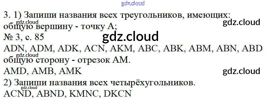 Страница 85 Ответы к части 1 по Математике 3 класс Учебник Моро Школа России Часть 1, 2 Просвещение