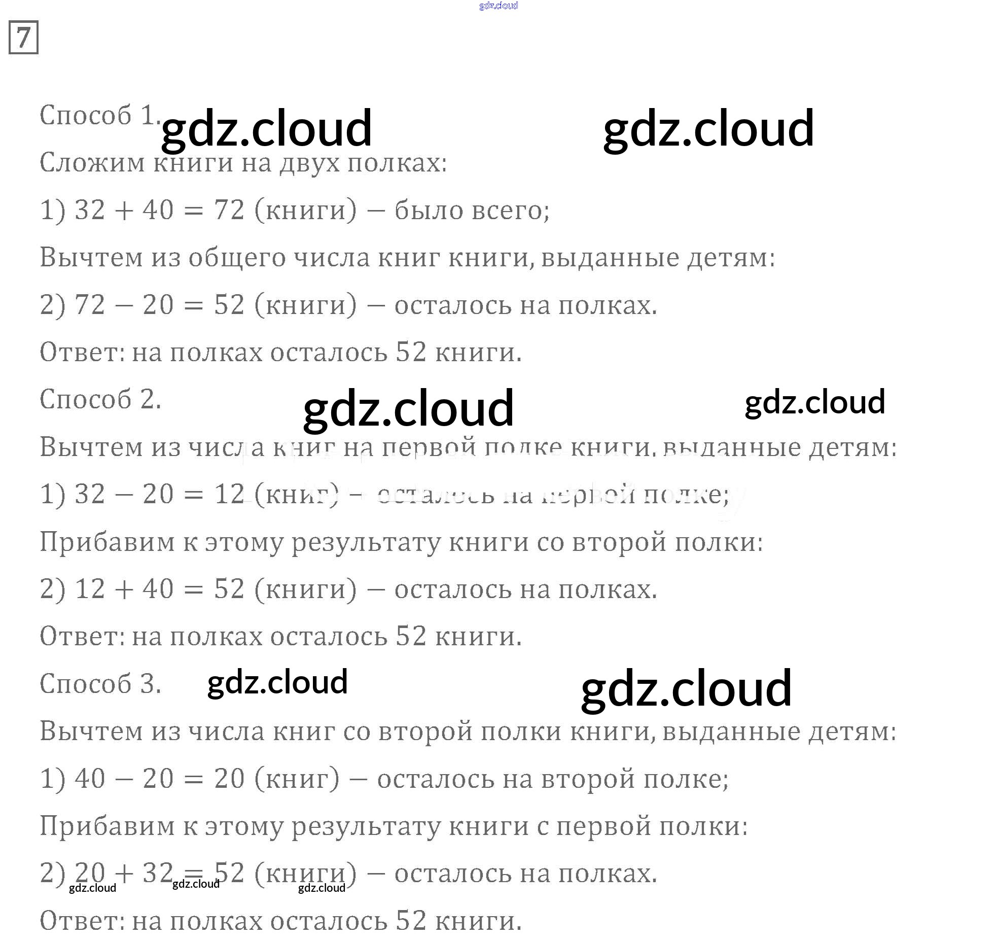 Ответ на задание 7 Учебник Математика за 3 (третий) класс Моро, Бантова, Бельтюкова, Волкова, Степанова Школа России 2015 Часть 1, 2