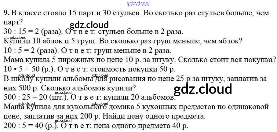 Ответ на задание 9 Учебник Математика за 3 (третий) класс Моро, Бантова, Бельтюкова, Волкова, Степанова Школа России 2015 Часть 1, 2